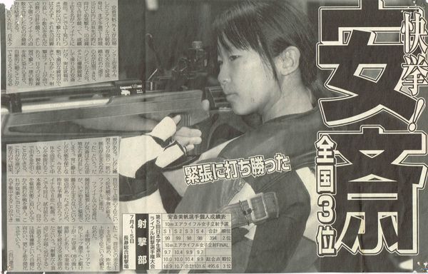 ファイナルでの安斎は、競技前は緊張しないのだが、いざ始まると緊張で震えが止まらないという弱点があった。そのため、昨年も予選1位からファイナルで6位へ転落。そこで今回は、試合前から本番をイメージし、自分を緊張状態に追い込んでから挑む作戦を導入。これが見事に当たり、「焦らず集中することができた」と、首位との差を1.3点差に留め、昨年を上回る3位という成績を収めた。