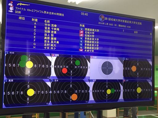 また、3日目は団体ファイナルを取り入れ、最終日に名城大学との交流戦を取り入れました。名城大学との交流戦では男女40発の競技とファイナルを行いました。これにより、緊張感のある状況下での射撃ができました。また、交流戦ということもあり名産戦の前日には練習会を、行い同じ宿で食事会も行いました。この名産戦はこれからも続けていければと思います。