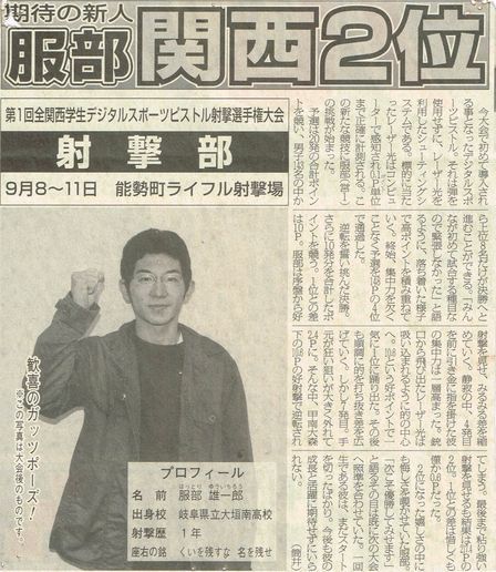 今大会で初めて導入される事となったデジタルスポーツピストル。それは弾を使用せずに、レーザー光を利用したシューティングシステムである。標的に当たったレーザー光はコンピューターで感知され0.1P単位まで正確に計測される。この新たな競技に服部(営1)の挑戦が始まった。