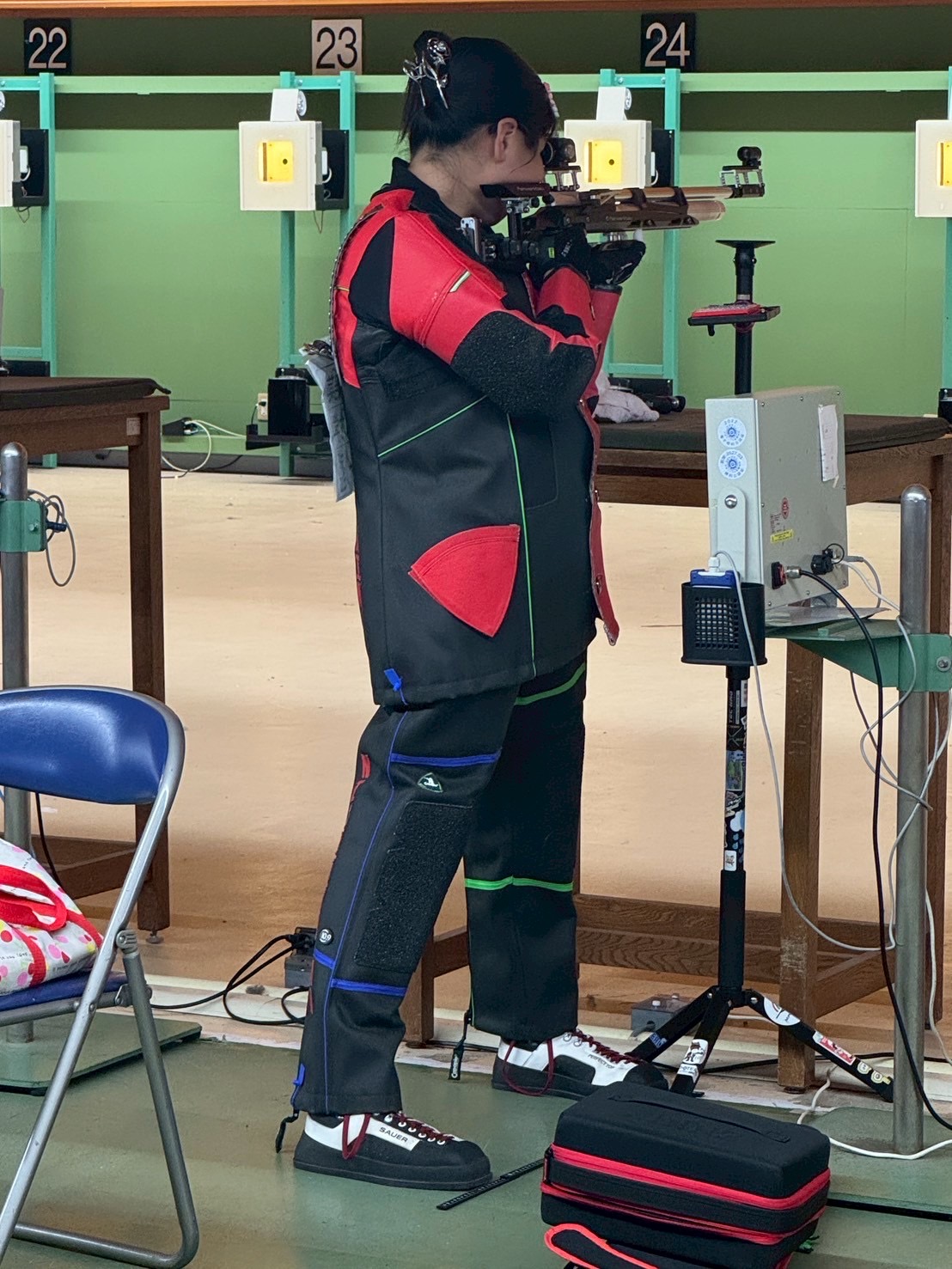 ライフル競技は、光線(ビーム)を使うビームライフル、空気の力で弾を撃つエアーライフル、そして火薬を用いて射撃するスモールボアライフルの3つの種類があります。初めての方はビームから始めて、エアー、スモールボアと段階的に様々な種類の競技に挑戦できる楽しさがあります!